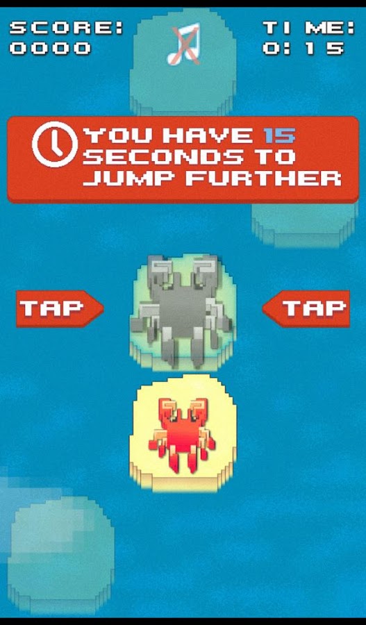Fun arcade game with retro feel. You have to jump on sand and make as many moves as you can in 15 seconds. Tap on the water and it's game over. Single tap gameplay optimized for mobiles.